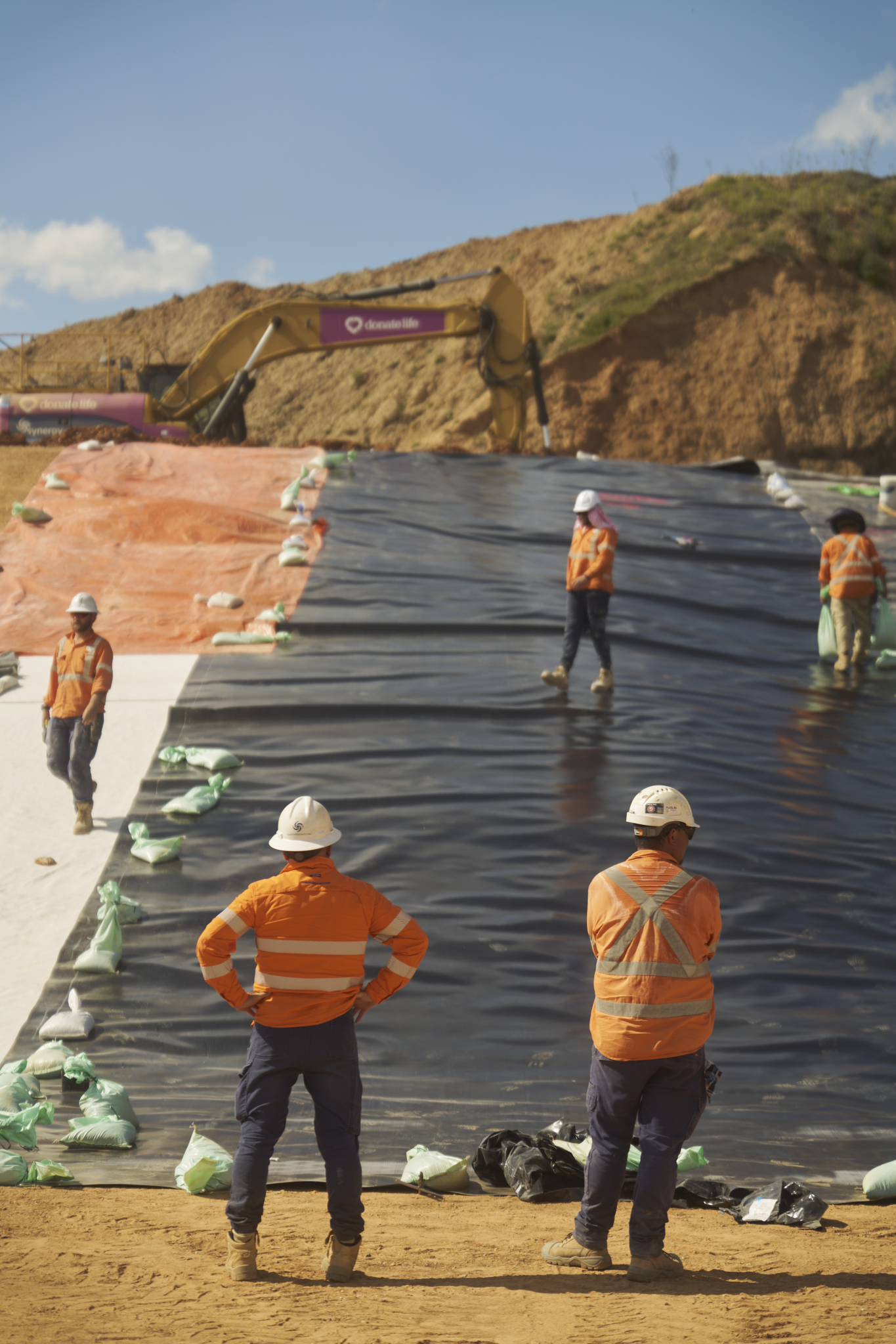 The scope of work includes constructing a new landfill cell featuring a leachate barrier and collection system, alongside supporting infrastructure such as a leachate pond, sediment pond, weigh bridge, gatehouse, site office, and waste transfer station with associated services.